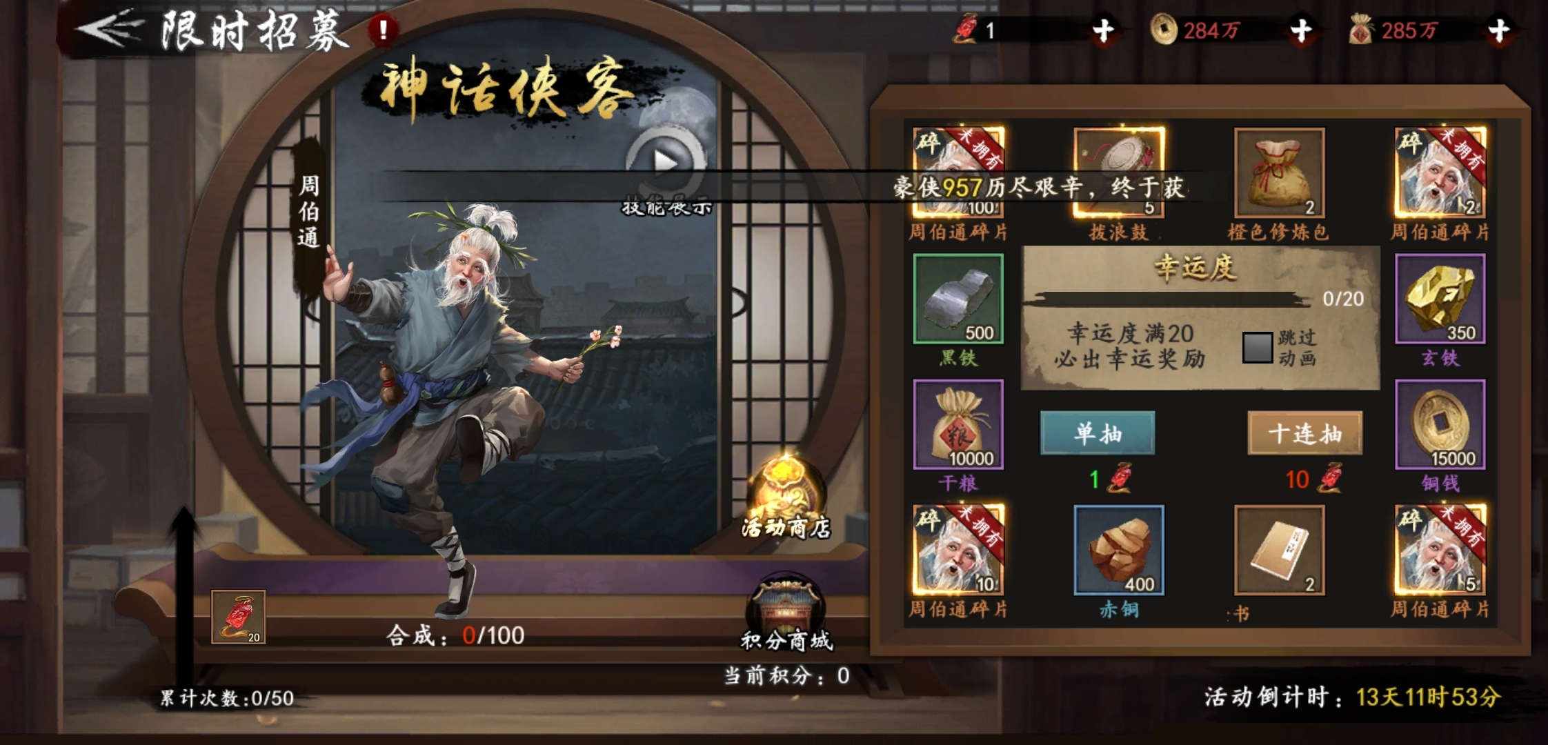 大侠们通过参与活动,即可获得全新神话侠客周伯通啦!