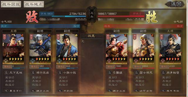 这是白板吕布单穿双满红的战报,打满红群盾战损远比对方要高,完全靠爆头获胜。再打虎臣时,队伍仅剩一千多兵,依然是靠爆头获胜。