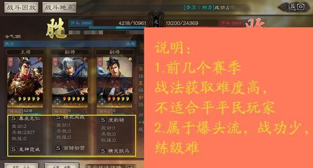 1.横戈跃马看似很强,实际很弱。不是战法效果不好,而是输出环境不适合。