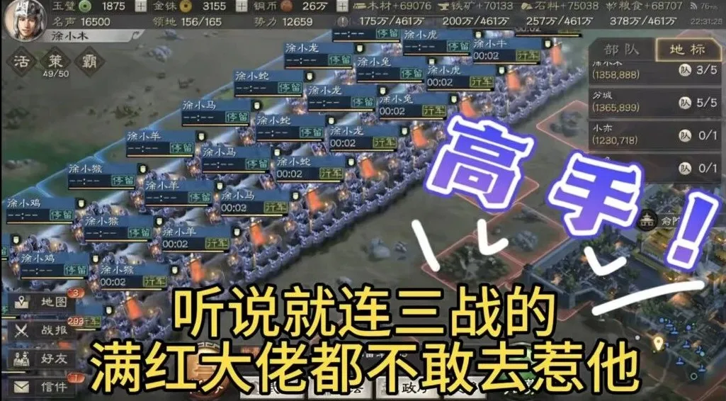 这是野战和盟战的既视感,是不是压迫感满满?按照《三国志·战略版》现在的游戏节奏,白板只要搭配不拉,搞定一个满红,无非就是队伍多少的问题!