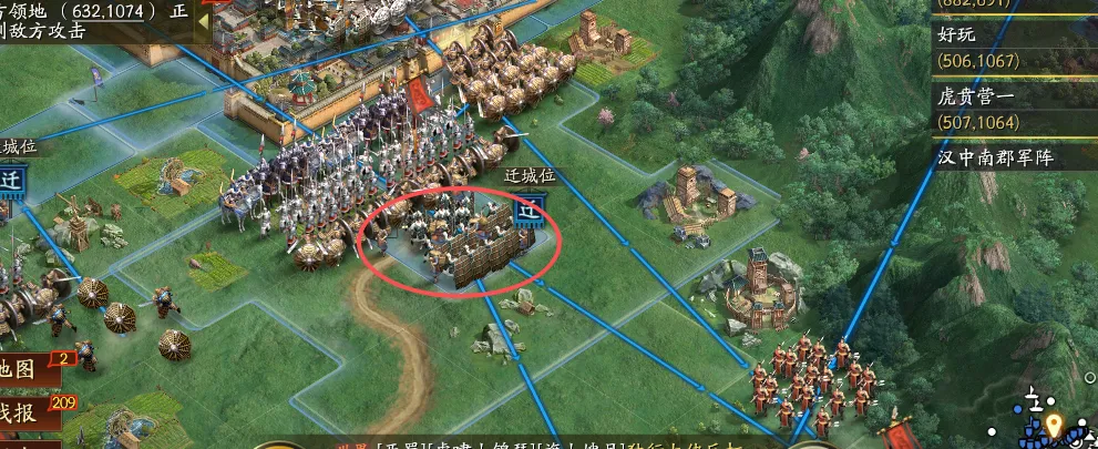 算一笔账,他控了40个号,只有一个账号被封了6个小时,你们觉得这个“人肉挂”是不是很划算呢?后来,通过申诉账号恢复了,客服给他的回复是减少控号数量!那么,问题来了,减少到多少算少呢?其实只要把40个号,分到六个盟里,一个盟放5-7个账号,既规避了触发团控的首要条件:同盟团控!首个条件只要不触发,后面就都不是问题,因为他这是自己玩的,长时间一个IP,属于常用登陆设备!其实,我们都知道游戏到了后期,真正影响战局的战斗集中在霸业争夺区域!这种“人肉挂”的意义有多大呢?下面这张图是掩护迁城位的,现在迁城只要核心区域用迁城使就可以了。相反,迁城使被打了,就意味着很难迁城。