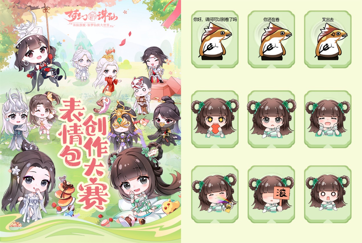 斗图表情再上新,助你开启欢乐畅聊!仙盟在前段时间完美落幕的表情包创作大赛中,征集到了不少由道友亲笔创作的优质作品。为了将这份共同的纪念分享给同在神州修行的道友们,「共创」表情包页签将于今日维护后全民免费解锁!Q版碧瑶小凡、可爱仙灵、憨憨鱼老三系列表情包登场,聊天斗图,趣味无限~