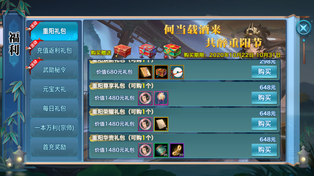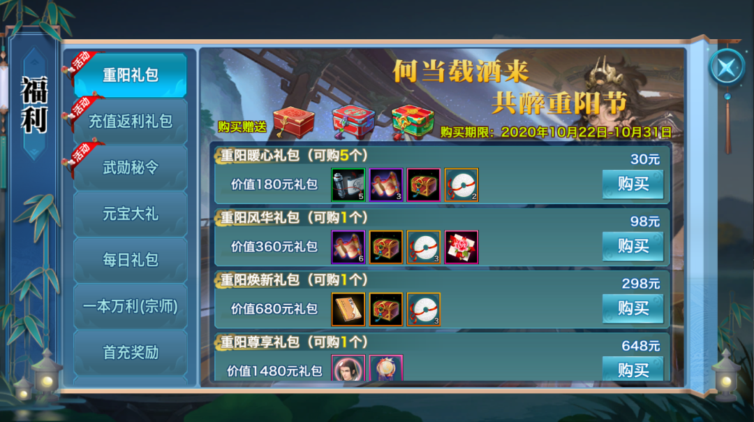 10月22日~10月31日期间,少侠可在福利页面购买