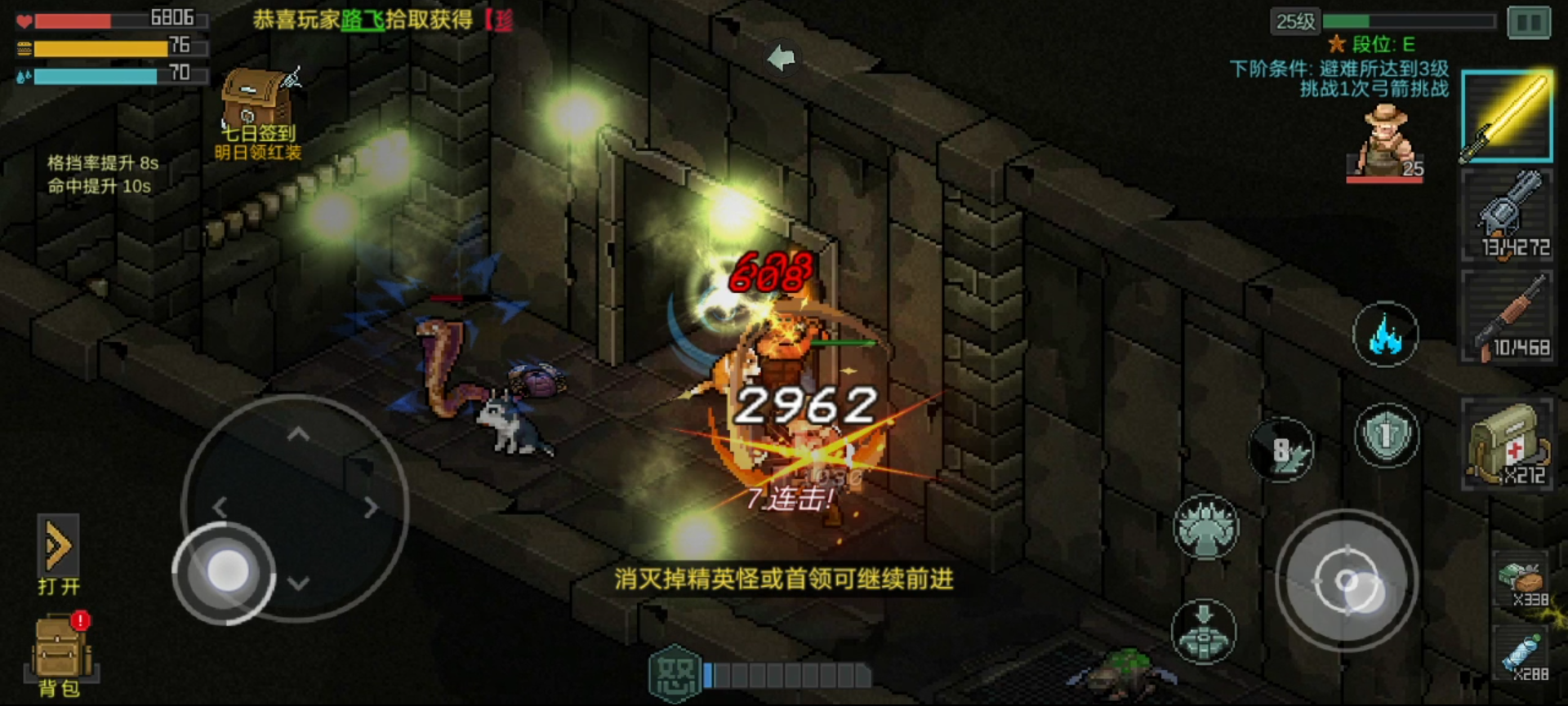 有些小伙伴可能有一些投机取巧的想法(直接开启加速跑到下一关,不与怪物打架),像素危城在这里直接将这种想法掐灭。想要进到下一关,必须要将这一层的精英怪和首领怪全部消灭。