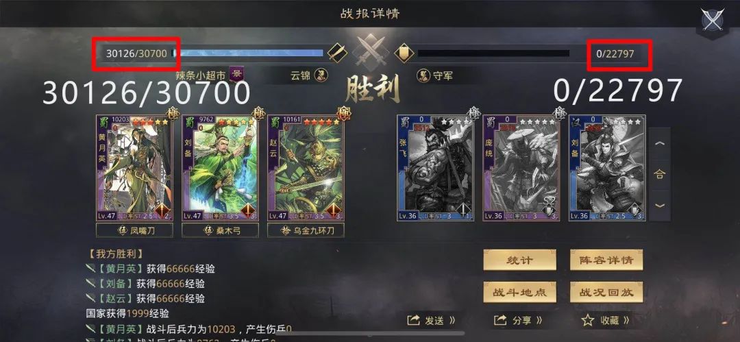 @Heartbeat看到一向暴力的菜刀队居然被蜀步团灭看来蜀步的实力也是不容小觑啊 蜀步低损团灭敌方 在接连战胜孙权曹操之后蜀步队本轮居然遇到了由四星刘备坐镇大营的团队亲“兄弟”见面没有泪汪汪反而打得十分惨烈