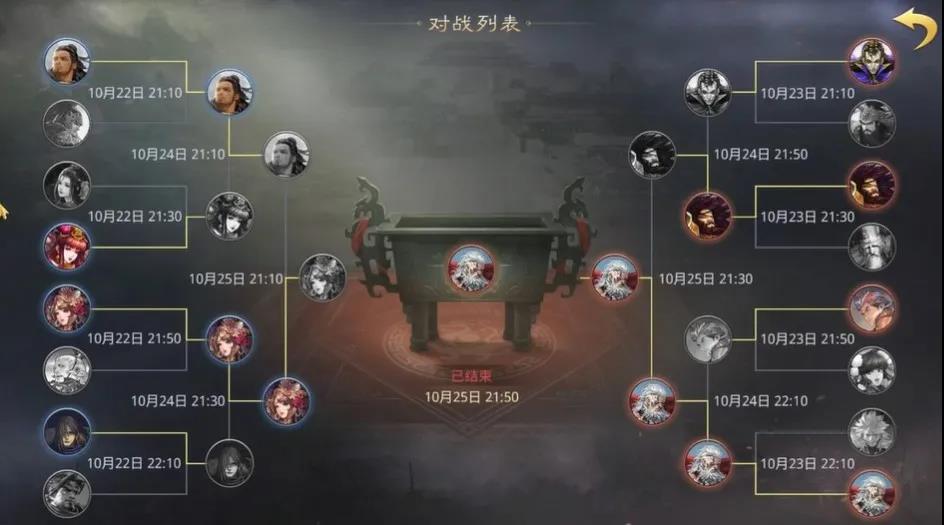 “三国弈·群雄并起”赛事已于10月25日(上周日)圆满结束啦~在最终进入半决赛的4支队伍间通过3场激战决出了本次赛事的冠军队伍——沙摩柯、袁绍、曹仁