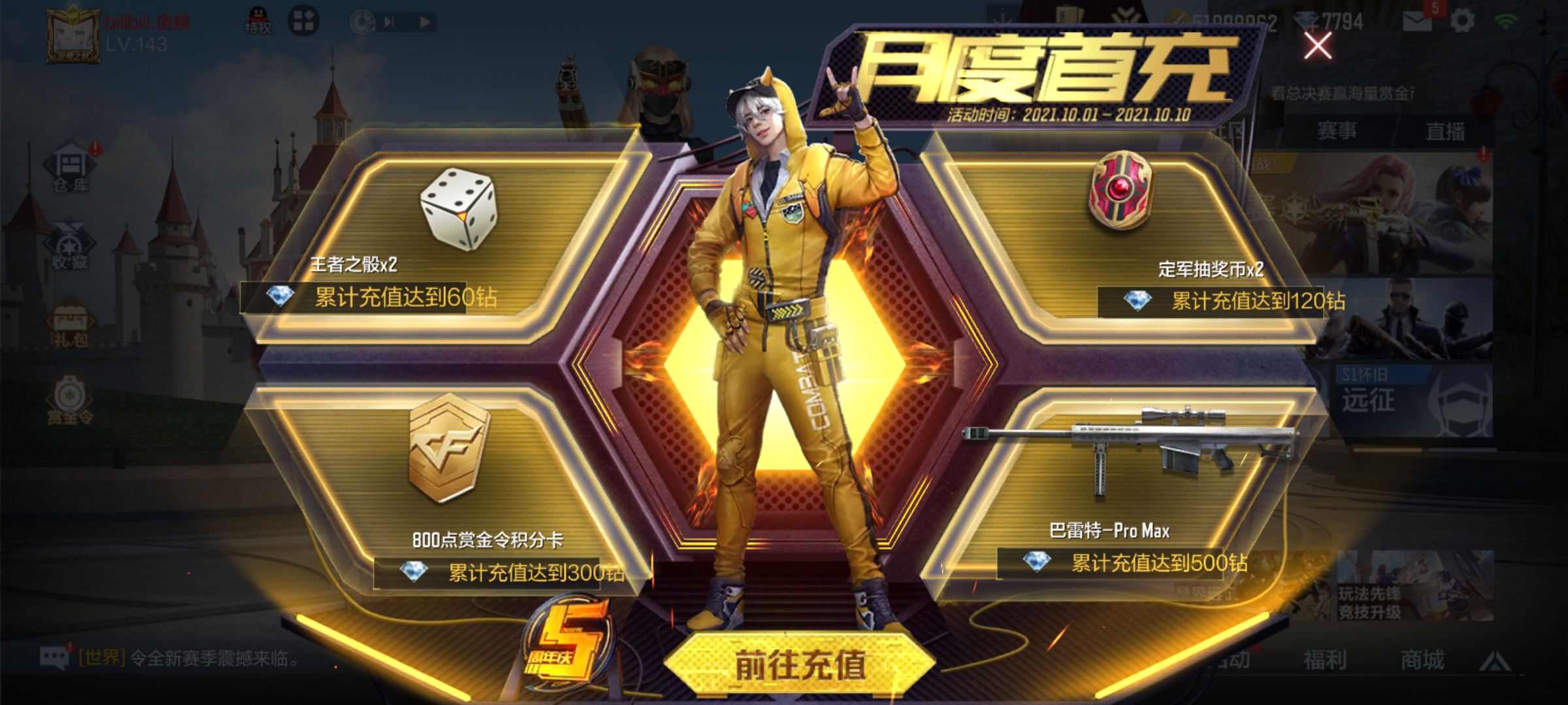 充值120钻石,定军抽奖币*2个,黑化定军夺宝抽奖的必备道具;充值60钻石,王者之骰*2个,飞行棋的必备道具,礼包产出的敲门砖。这几个抽奖币虽然不能出个保底,对氪佬们也感觉没什么用,但是如果抱着试一试的心态单抽就中了呢?对吧,毕竟还是要相信奇迹的~