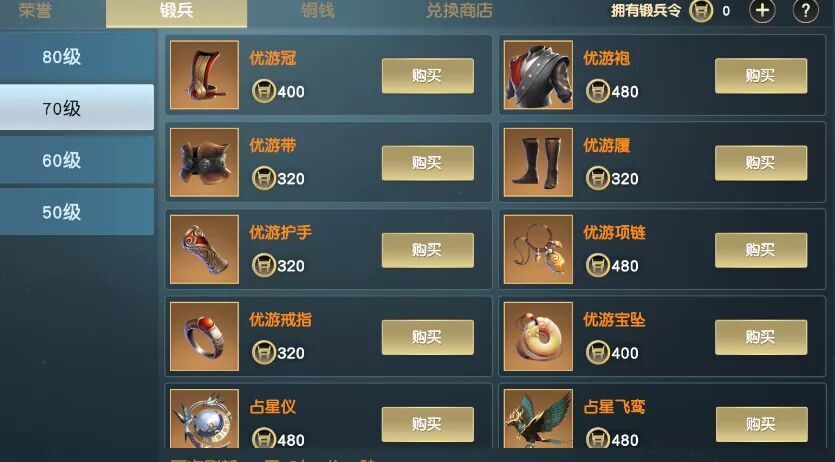 通过副本/团本可以获得大量锻兵令,可等70级的时候换取橙装,所以前面可以尽量不去换取装备。