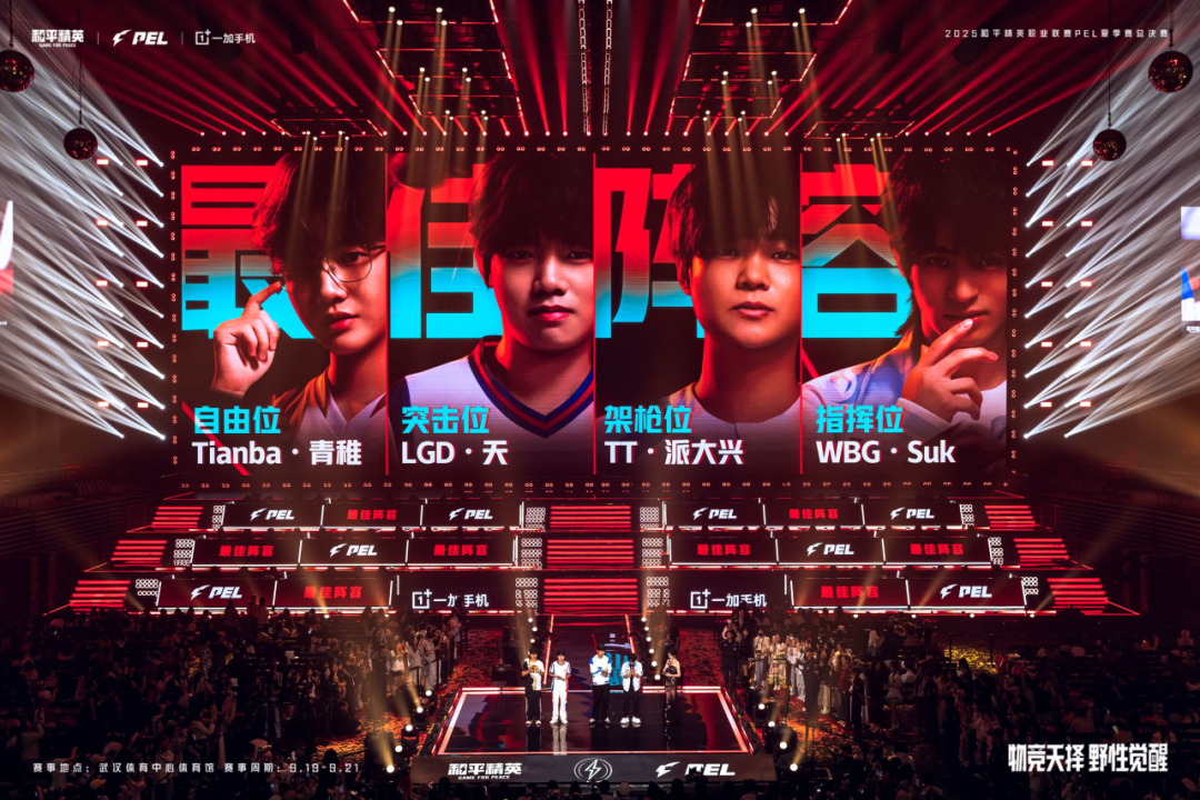 其中,来自苏州Tianba战队的核心选手青稚,创下单赛季15次MVP的记录,以场均淘汰1.75、场均击倒1.75、场均伤害494.68的领先成绩,荣获2025PEL夏季赛常规赛MVP和“最佳自由位”称号;同时,杭州LGD战队突击位选手天、北京WBG战队指挥位选手Suk、广州TT战队架枪位选手派大兴,共同入选本赛季常规赛最佳阵容。