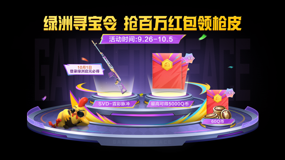 10月1日登录绿洲启元大厅后,可直接在活动领取全新枪皮肤SVD-霓彩脉冲!