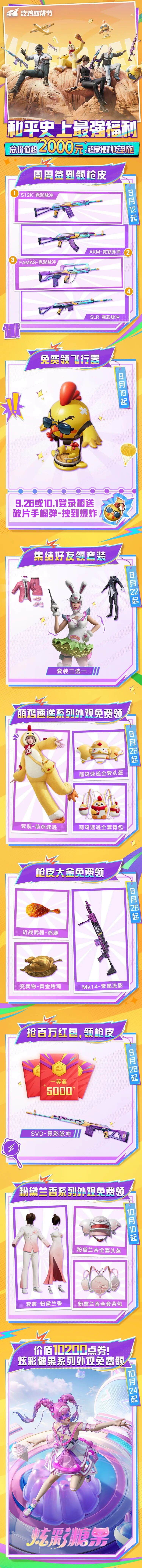 10月1日上号直接在【萌鸡速递】系列套装、全套头盔、全套背包中任选一件领取,完成任务还可再得另外两件!