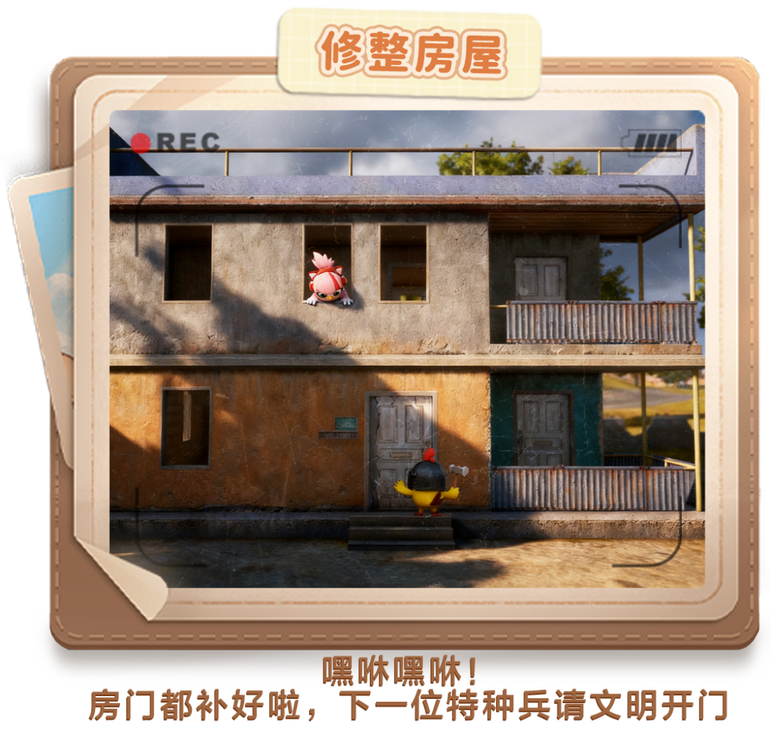 光子鸡小队正拿着扳手、拖把、油漆刷、物资
