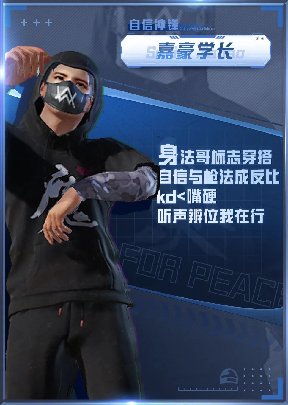 自信与枪法成反比,人均“拳打G港,脚踢N港”。口头禅是“拉我我能反!”、“一个打四个!”。对枪前“让我来”,对枪后“救救救”。疯狂迷恋上分和印记!