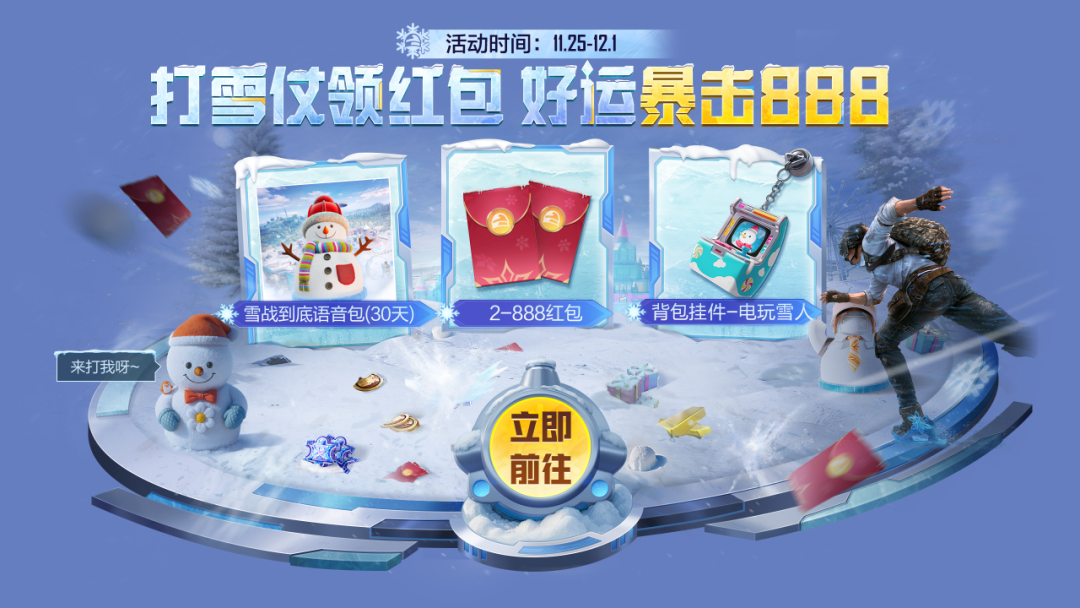 11月25日15:00-12月1日,玩家与好友打雪仗可获得雪花积分,累计积分可获得语音包和背包挂件等奖励,打雪仗过程中可能触发惊喜红包,红包可分享给好友一起拼手气,暴击现金或Q币奖励!