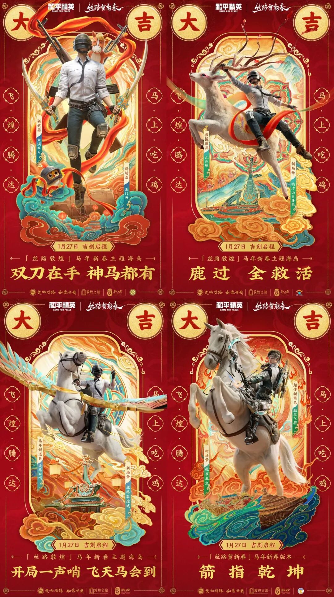 1月27日,《和平精英》马年新春版本「丝路贺新春」正式上线!该版本迎来重磅的全模式玩法更新,与线上线下各色内容联动,将敦煌国风、火山激战、探墓冒险等新鲜元素尽数注入战场,并携手文旅合作,带来诚意满满的开年大作,邀请亿万特种兵沉浸式解锁“马上吃鸡,应有尽有”的春节欢趣,全面承包整个春节的娱乐清单。