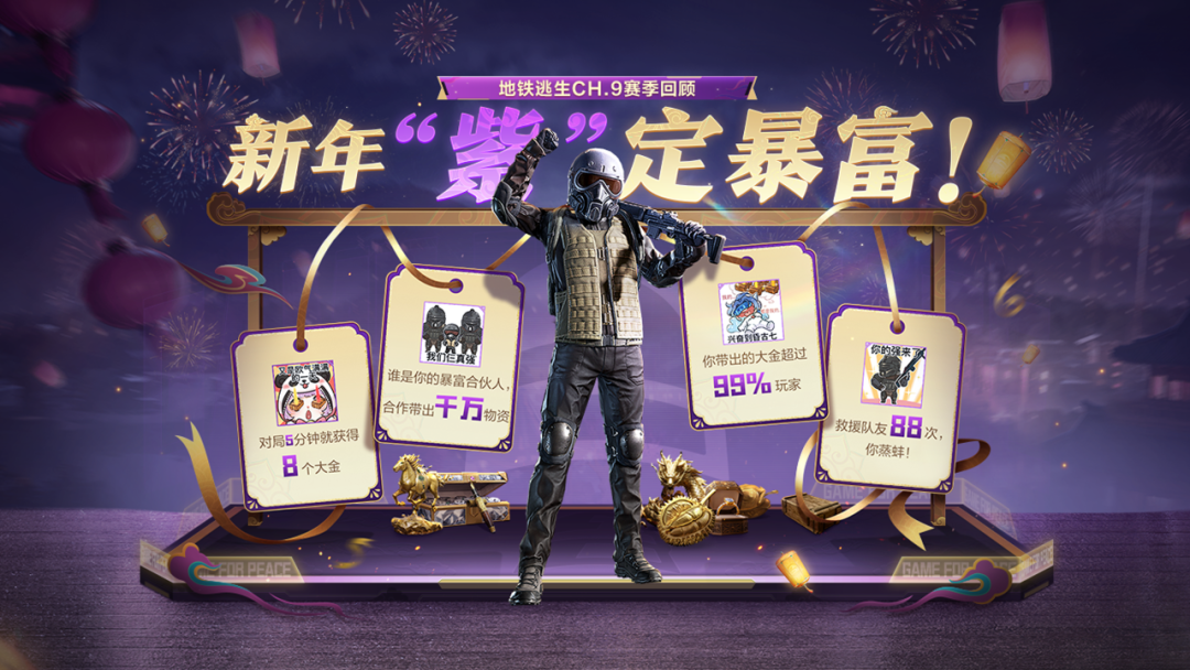 分享自己CH.9赛季回顾可领取【珍稀古钱币×1】和【地铁币×160000】,点赞或评论好友的CH.9赛季回顾还能获得赛季福袋,奖励均发放至游戏内地铁逃生邮箱,赶快分享你的战绩吧!