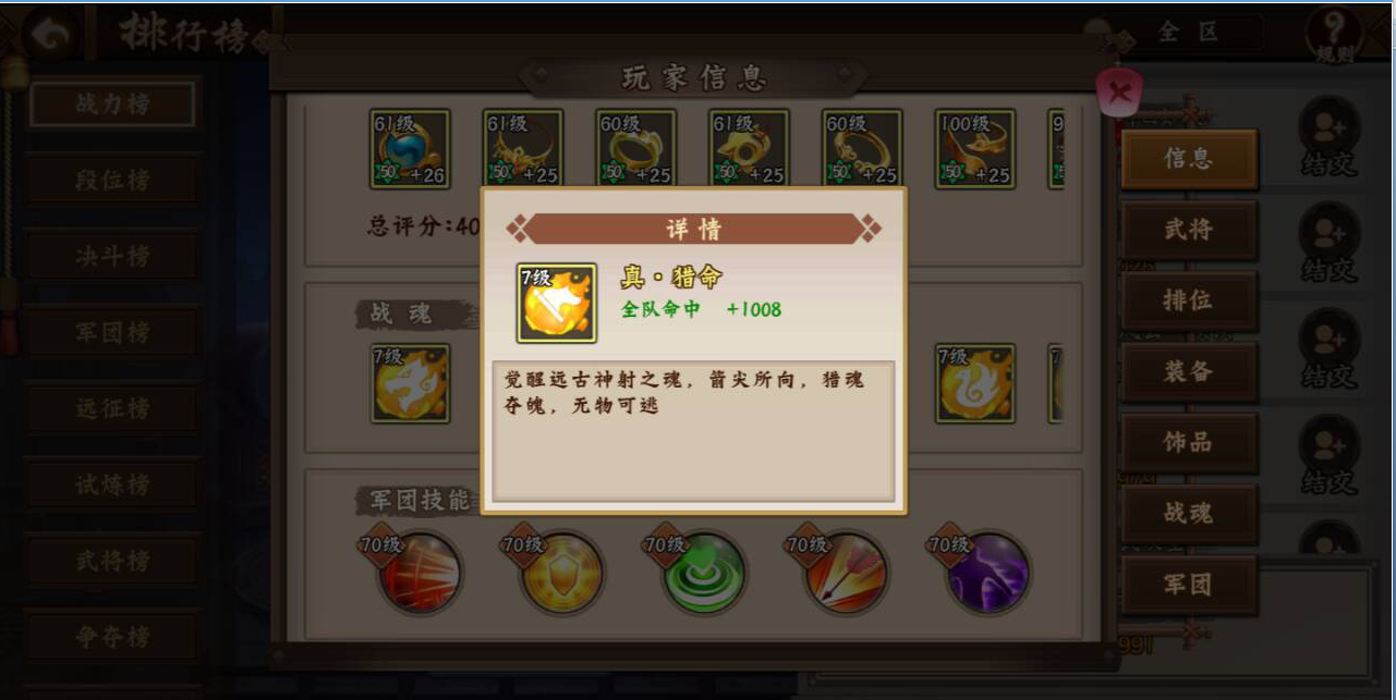 提升命中途径有:小编认为:战魂中的猎命是武将命中属性的一个重要体现,最大限度的优先培养提升此战魂对武将命中的提升帮助匪浅。