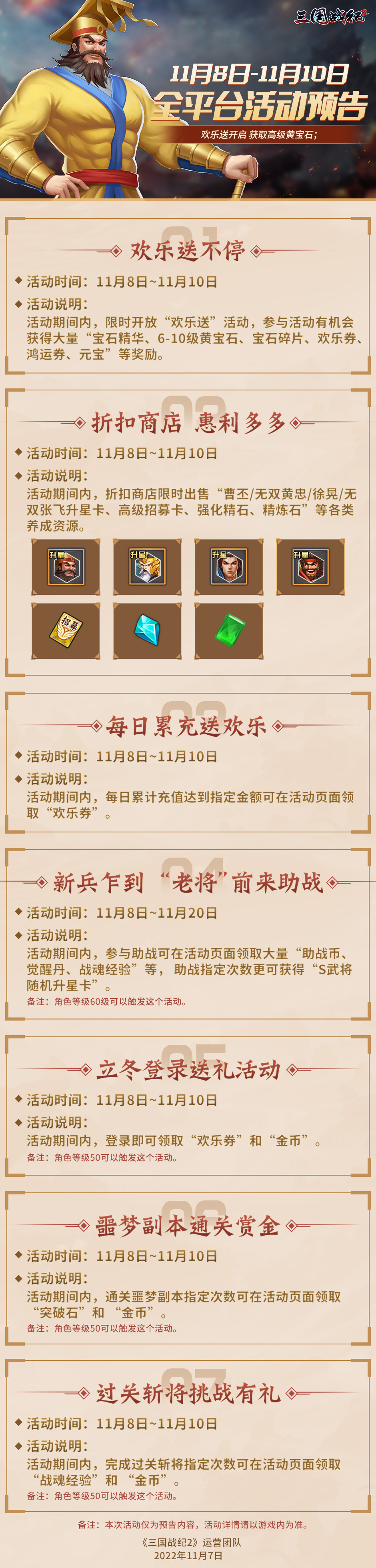 《三国战纪2》11月8日-11月10日全平台活动预告