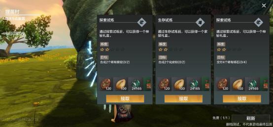 6.完成手札“环狗儿的提醒”后,每天可以接取异人村悬赏任务,每天可以接六个,可获得灵气以及其它的丰富奖励。建议花费贝币多刷新几次,尽量接到四星或五星任务,给的奖励会比较高一点。