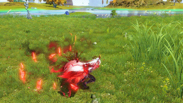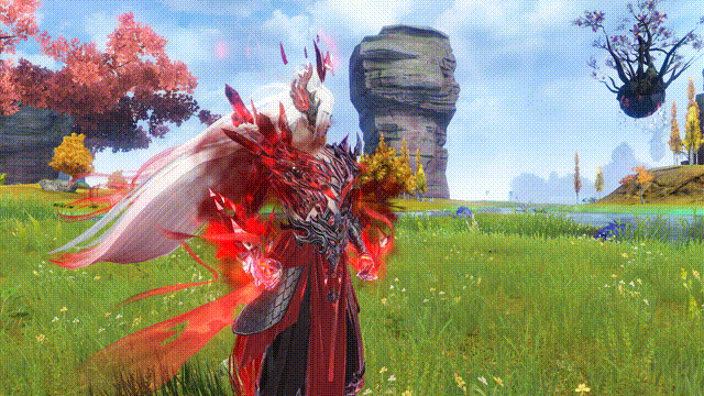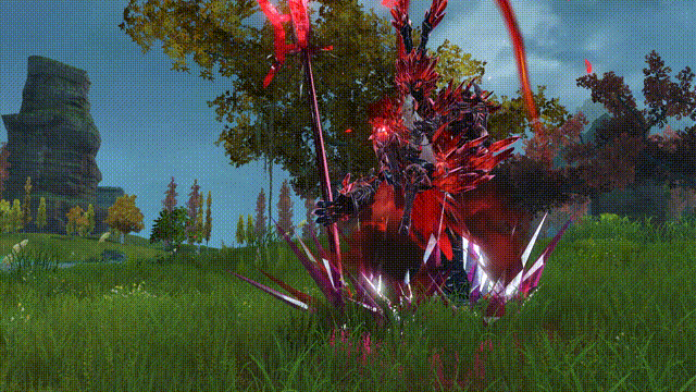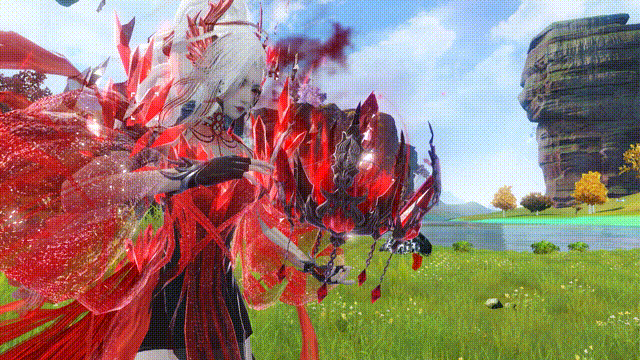 点击该交互后,旅者会进入狂暴状态(特效表现,无实际加成效果),解锁对应狂暴动作,周身被血色包裹,行走间留下血晶足迹。(战斗不打断)