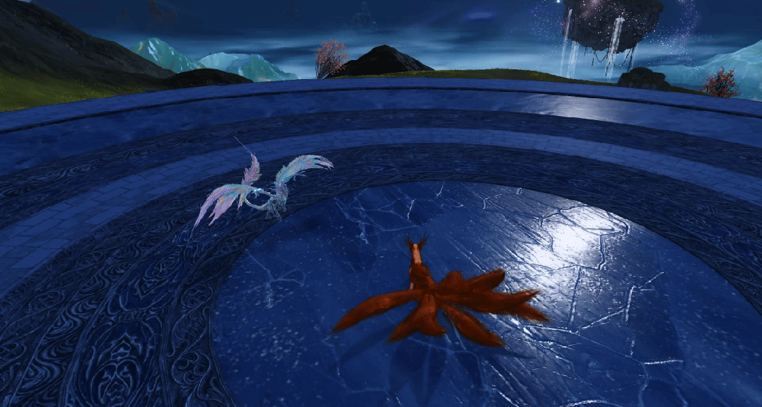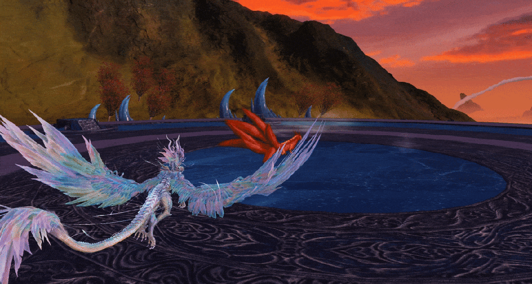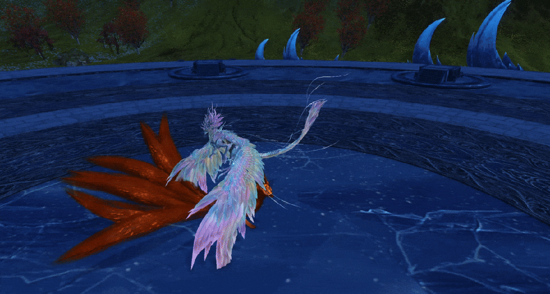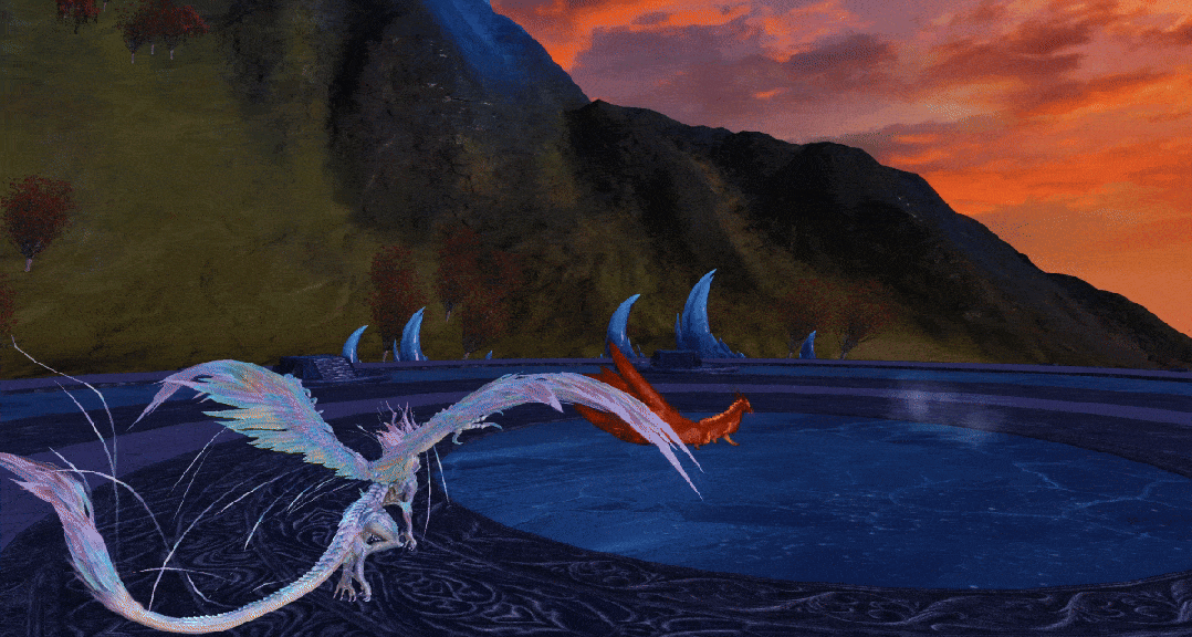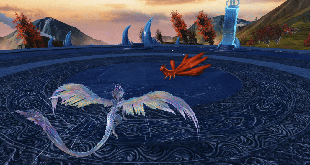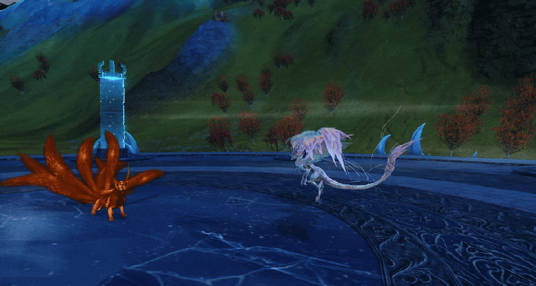 亮翅后再左右交替甩出翅膀上的羽毛攻击敌人在目标地点产生爆炸(近程伤害);据传,此招式为嘲风观察风神禺强战斗时领悟