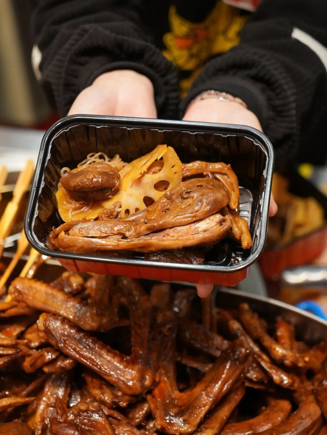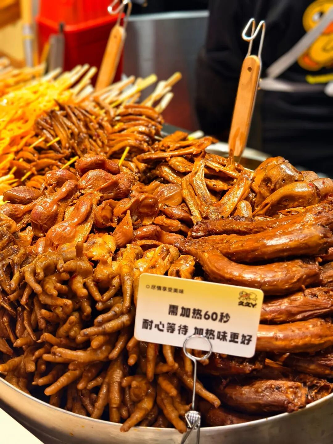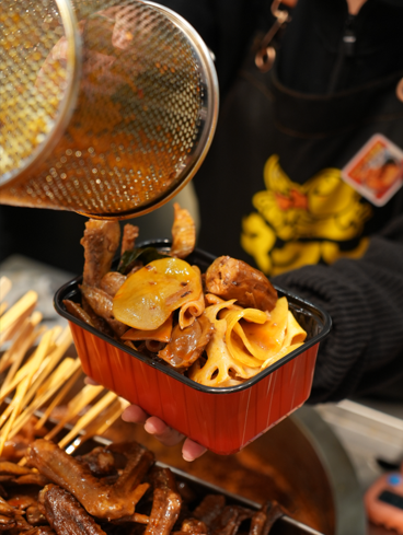 升级后的【火锅鲜卤】门店,明档里翻滚的是香气扑鼻的火锅底料。这正是久久丫的核心突破:将火锅的沸腾灵魂注入传承多年的卤制工艺中,创造出“香更浓、味更鲜”的热卤新体验。它贴心地推出 “骨汤不辣” 与 “川味麻辣” 双风味,既保留了卤味的醇厚本质,又赋予了火锅般的热烈畅快。