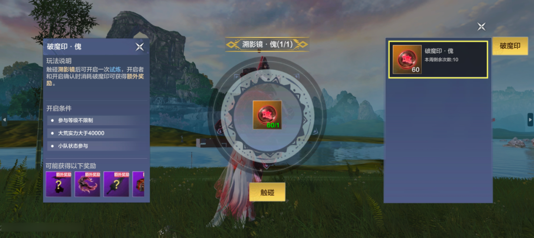 溯影镜为机制型魔化副本,当前版本有14个不同的玩法,推荐以小队形式参加。其中需要注意的是,开启时队员需勾选提交破魔印,方可获得通关宝箱开启权限。(PS:由于机制较强,妄妄更推荐旅者组队挑战!)