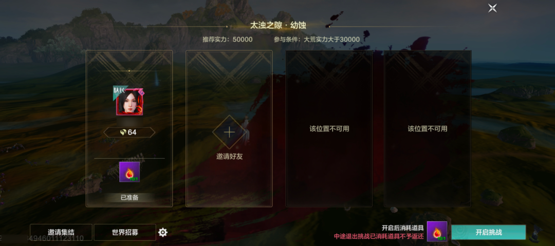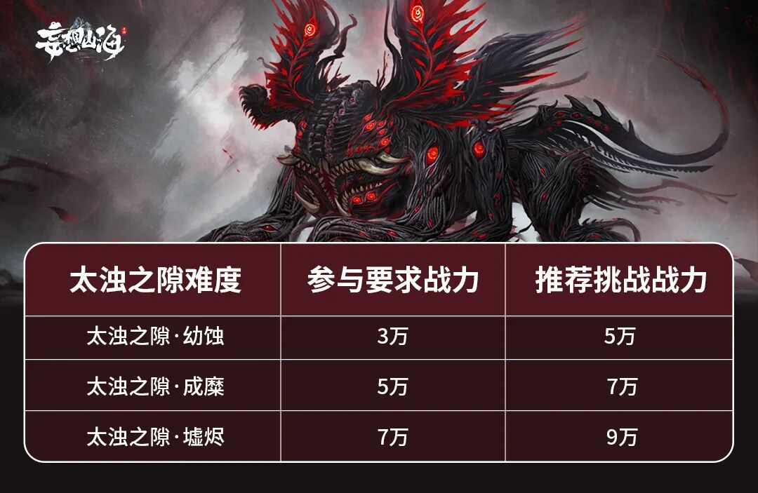 但是要注意,太浊之隙有战力要求,不符合挑战实力者无法挑战,并且最多允许两人组队进入挑战。不同难度对战力要求如下: