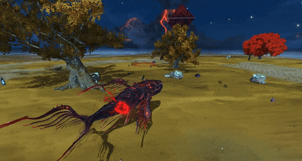 尸鲲周围出现诡异的闪光,并在短暂延迟后,孵化出大量,魔化的鱼群向前游动,对路径上的敌人造成(近程伤害)。悲鸣的等级越高,召唤的鱼群数量越多