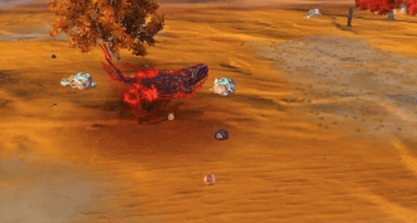 经过长期的训练,鲲鲲对血色之球的运用也愈发熟练。长按技能后鲲鲲会对面前区域进行瞄准,松开技能按钮或到达最大距离后,鲲鲲会朝瞄准区域投出血色之球,在落点处爆炸(近程伤害),并持续造成范围伤害。