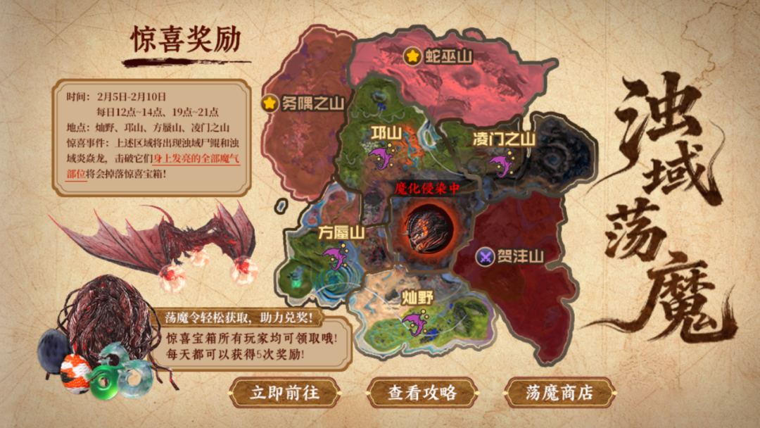 中午方蜃山、邛山将出现浊域魔物·尸鲲、浊域魔物·炎焱龙