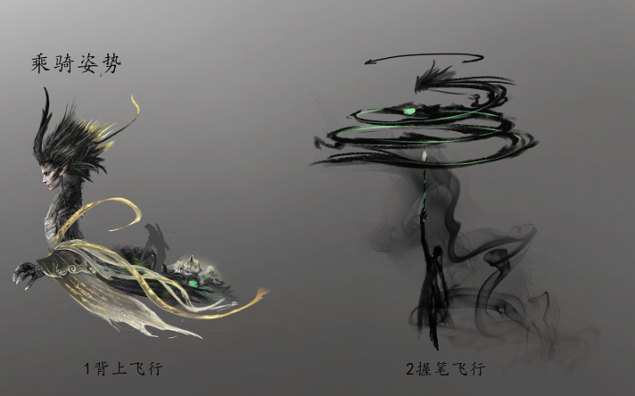 ○ 负屃骑乘姿势早期设计概念图