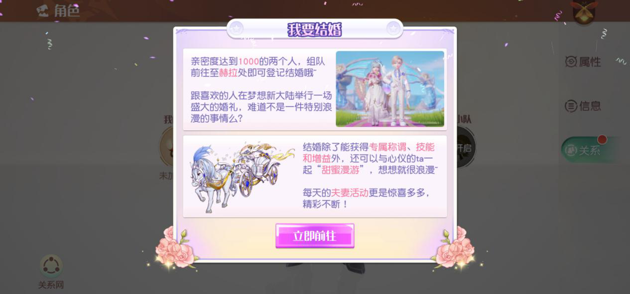 点击主界面右上角人物头像,找到【关系】→【我的妻子/我的丈夫】,进入夫妻功能页面,右下角情侣任务处【前往接取】。