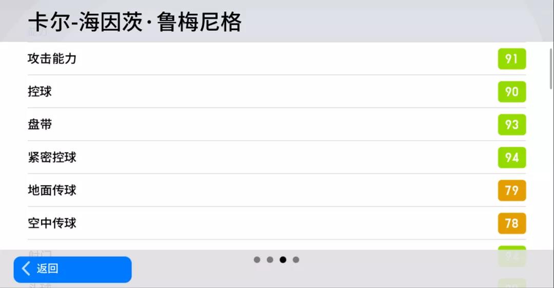 鲁梅尼格在游戏中的手感极佳,操作顺滑(阿况亲测)。他拥有93分的盘带和94分的紧密控球,可以在狭小的禁区内通过细腻的小动作晃开防守队员,创造出射门空间。91分的攻击能力、94分的射门和92分的脚下力量,赋予了他极佳的终结能力。再配合上鲁美自带的【远射】、【急升射门】、【接球直接射门】和【杂技般进球】等技能,这让其在实况中锋里稳坐t0宝座!