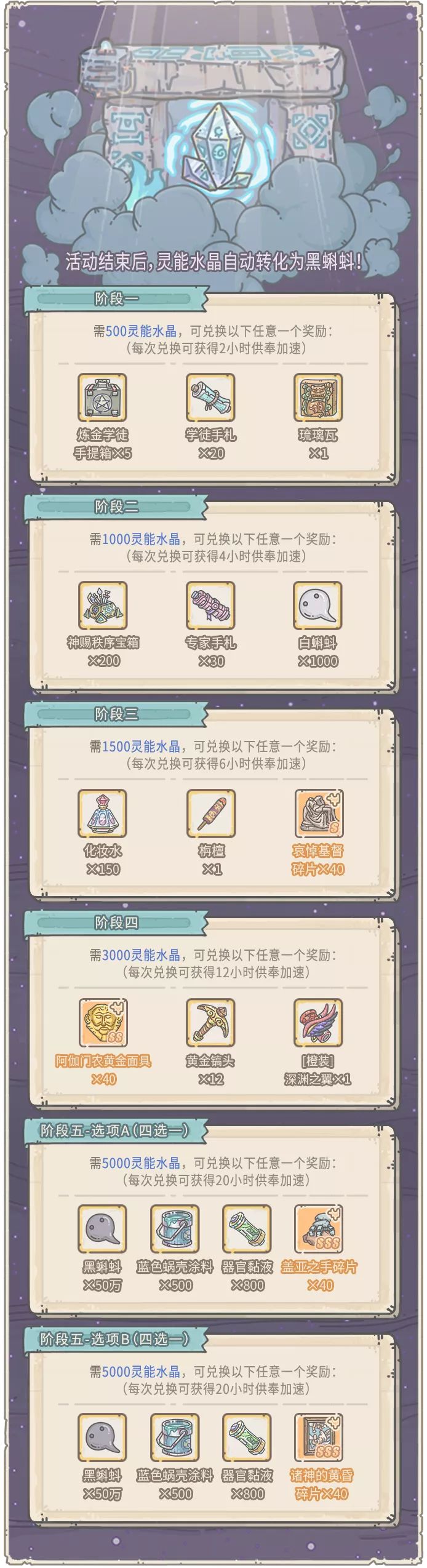 1、活动期间,可以消耗活动货币“灵能水晶”兑换奖励