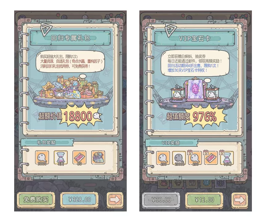 -增加回归超值月卡:活动期间,回归玩家可获得一次低价月卡购买机会,花费¥12购买VIP宝石卡;