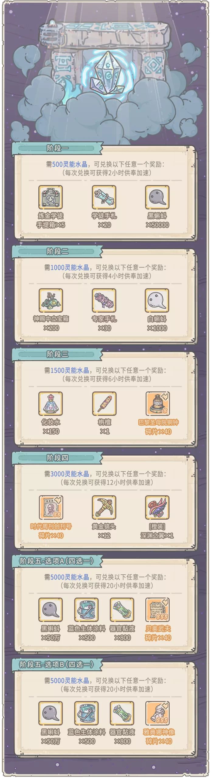 1、活动期间,可以消耗活动货币“灵能水晶”兑换奖励