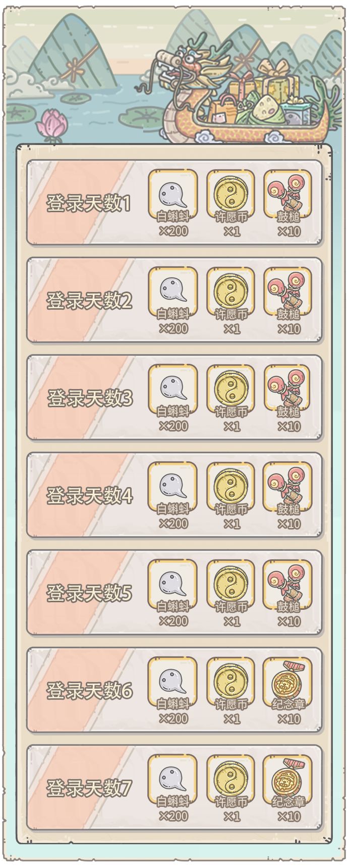 2、活动期间若未领取端午赠礼,则一直累计奖励,直至在下一次领取时,获取当前累计的全部奖励