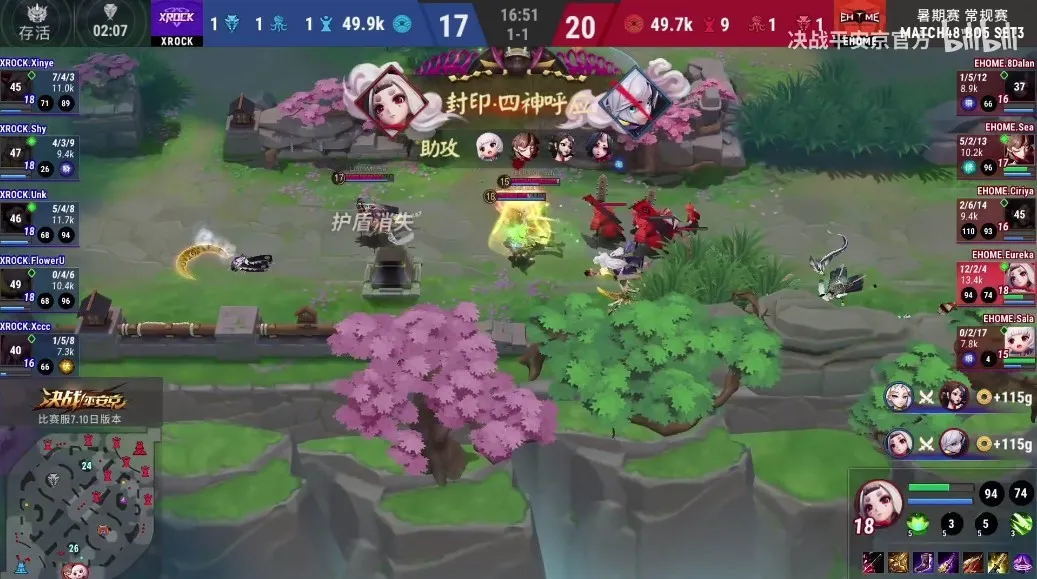 但EHOME很快抓住XROCK的机会。XROCK在下路摇摆不定之时,EHOME依靠花鸟卷大招进场以1拉4,鸩豪取四神呼应,一波奠定比赛最终胜利!