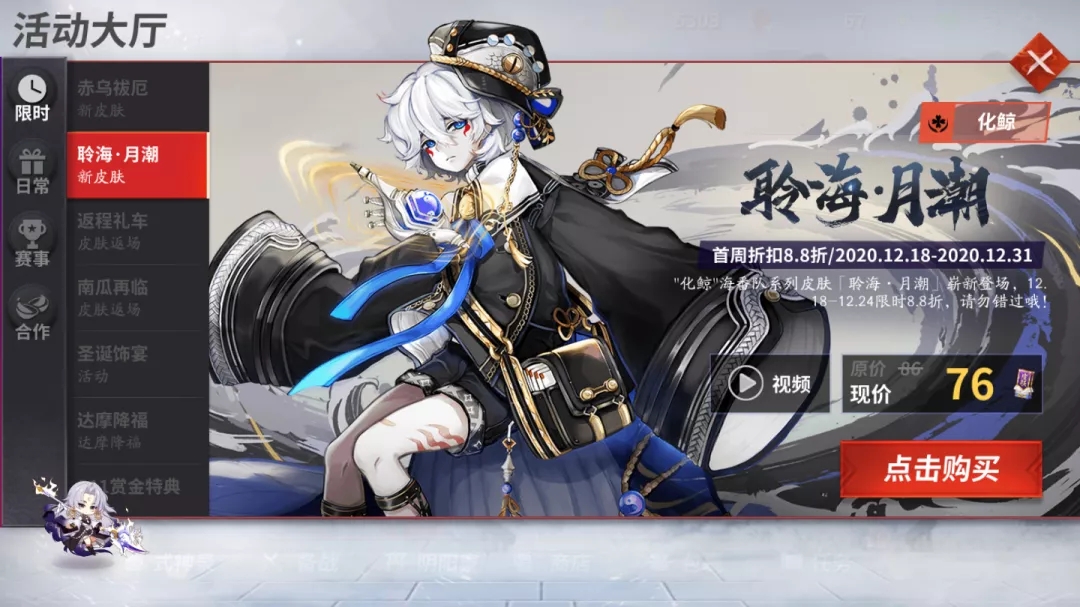 化鲸海番队系列皮肤「聆海·月潮」崭新登场,12月18日-12月24日更有首周折扣8.8折,请勿错过哦!