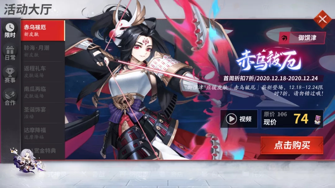御馔津应援系列皮肤「赤乌祓厄」崭新登场,12月18日-12月24日更有首周7折,请勿错过哦!