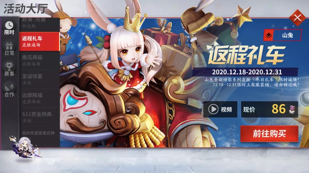 山兔圣诞颂歌系列皮肤「冬日礼车」限时返场!12.18-12.31限时上架服装铺,请勿错过哦!