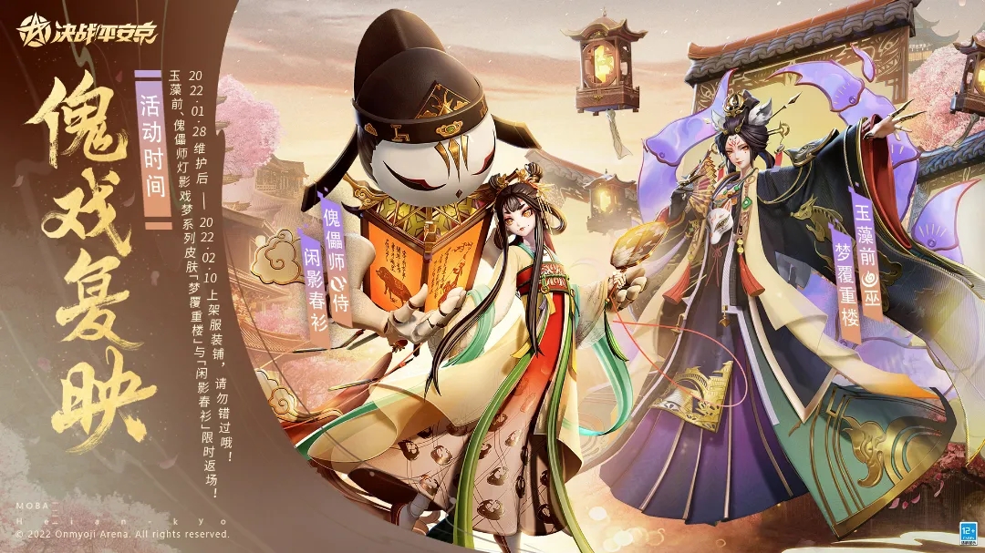 玉藻前、傀儡师灯影戏梦系列皮肤「梦覆重楼」与「闲影春衫」限时返场上架服装铺,大大们千万不要错过喔~