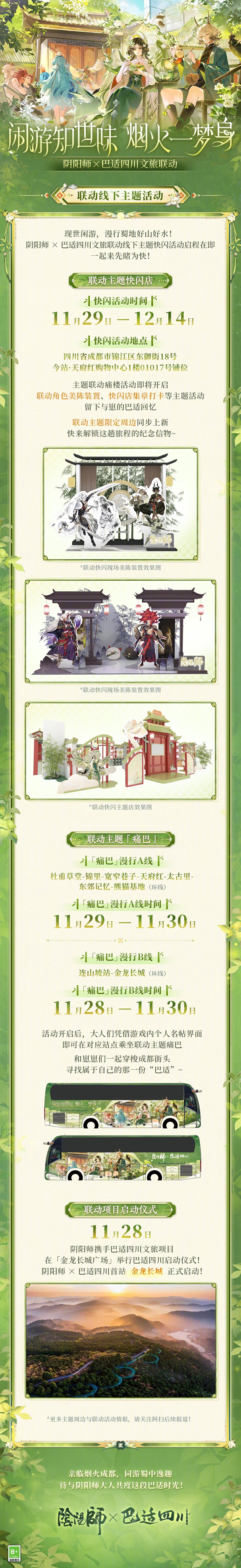 闲游知世味,烟火一梦身。阴阳师 × 巴适四川文旅联动即将启幕!不妨放缓繁忙的生活节奏,和崽崽们一起来蜀地闲游,同享巴适时光~联动情报先行奉上——
