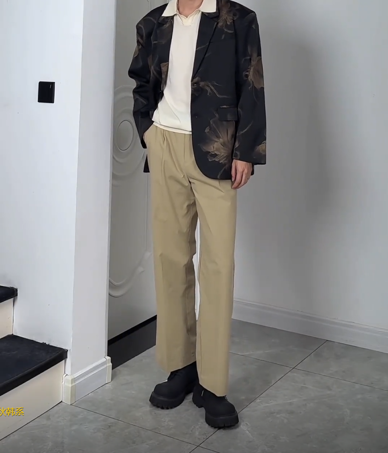 所谓“琥珀流光”,核心是抓住三个关键词:色彩上取琥珀的暖金、蜜棕、乳白等自然色系;材质偏爱亚麻、棉麻、天丝这些有呼吸感的面料;剪裁则以短款、收腰、微阔腿为主。比如一件浅卡其色亚麻衬衫,解开两颗纽扣,搭配同色系九分直筒裤,脚踩奶白色板鞋,随便往梧桐树底下一站,就是“校园邻班学长”的标准模板。