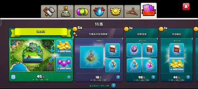 当小白登录游戏以后,先去了“部落商城”看一看这一次的“系统维护”能维护成一个什么样子,果不其然“礼包”又更新了,并且还伴随着“村庄背景”和“雕像”说句实话“部落冲突”不更新,这些礼包对我们真的没有任何的吸引力。