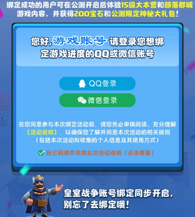 首先映入眼帘的就是这个界面,我们要选择新账号的登录方式,到底是“V信”还是“QQ”当然了在选择之前你要“勾选”下方的圆圈,证明你已经阅读并同意参加此次活动,当然了就算你想不同意也不行,因为这个选项是单方面的,不点击这个圆圈就进行不了下面的操作,小伙伴们还是老老实实的按照流程来走吧!