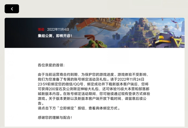 今天小白要向那些“退游”的玩家宣布一个非常重要的事情,部落冲突马上就要更新“部落都城”和“15级大本营”了,这是一个多么令人振奋的好消息啊!当然了想要解锁以上的项目,我们还要重新绑定游戏账号,但这些操作对于期盼已久是我们来讲都只是小意思。