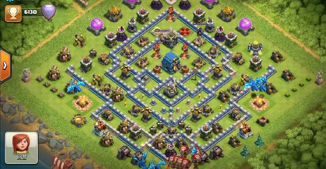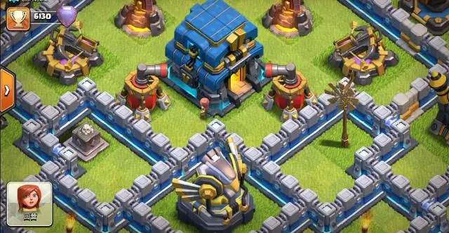 这个阵型目前被普遍用于顶级的传奇玩家里面,这个阵型最大的优点在于把防御分为了三大块。而把大本营置于中间,由于五星级的大本营伤害也是非常足的,所以也能算单独的一块伤害区域,如果敌人从上面进攻的话,那么他就会被下面的鸟炮和地狱塔打得满地找牙,如果从下面进攻的话又被上面的援兵和五星大本营会打得很惨,所以这个阵型最高可以打两颗星,三星几乎是不可能的。