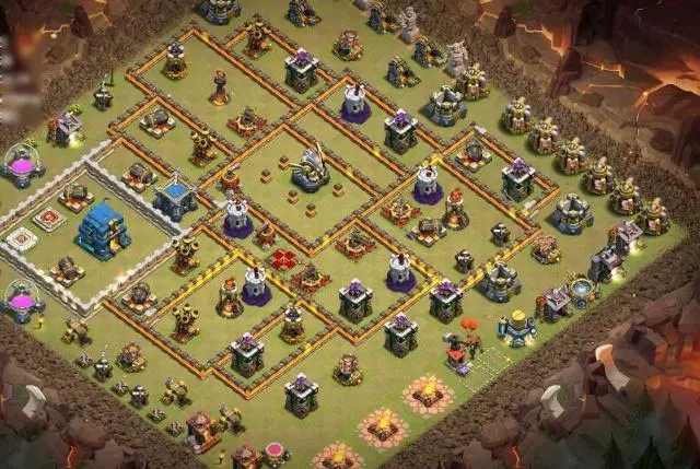 12本现在基本成熟,各种打法流派也都涌现出来,让玩家们选的头都大了,以前给大家分享过一些12本的各种打法,有雷龙流、有狗球流、有矿工流、有女巫流、有蓝胖流等,但是这些流派都离不开一个东西,那就是攻城车,攻城车在12本打法中,有着和女王一样不可或缺的地位。随着大本营等级越来越高,是不是感觉建筑物也越来越多呢?就算全散开摆放,都不能很好的去利用防御建筑打出更好的伤害,尤其是那些陆空一体的敌人,很让人烦躁,随着12本出来的雷龙,更是如同LOL中的“电刀”装备,一样的强势,所以,今天给大家带来的是几个比较优秀的阵型。在部落冲突中,“阵王”之路,能打能防,一阵多用!